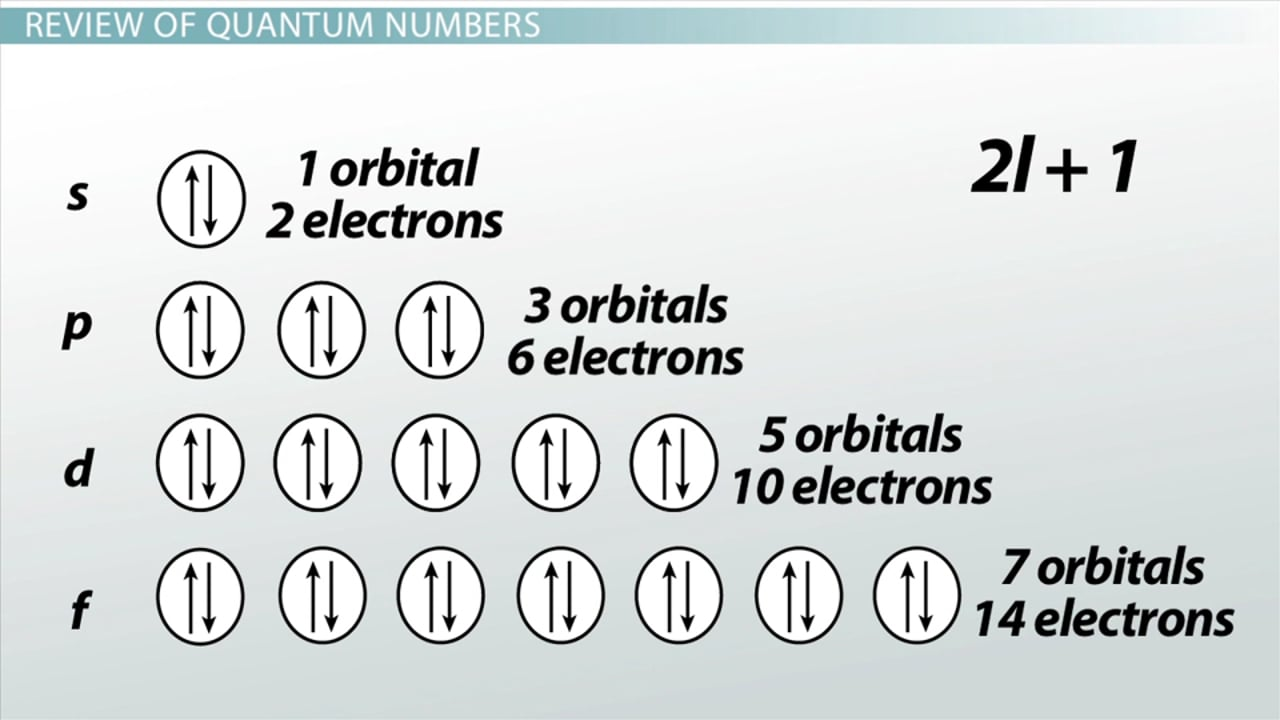 d 오비탈 및 f 오비탈이 가질 수 있는 총 전자수는 각각 10개와 14개입니다. s, p 오비탈과 마찬가지로 각각의 d 및 f 오비탈에는 서로 스핀이 다른 최대 2개의 전자를 가질 수 있기 때문입니다.