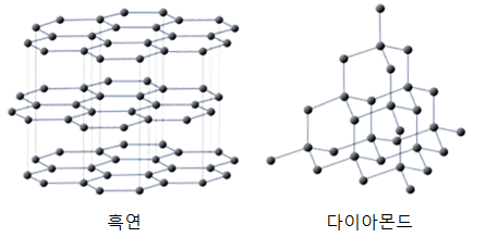다이아몬드와 마찬가지로 탄소로 구성된 흑연의 경우 다이아몬드와는 달리 탄소원자가 각자 3개씩 다른 탄소원자와 공유결합을 이룹니다. 따라서 각각의 탄소원자는 흑연의 층 사이에 비편재화된 전자를 가지고 있으며 이렇게 비편재화된 원자들은 흑연의 평면을 따라 자유롭게 이동할 수 있습니다. 이런 차이점으로 인해 다이아몬드의 전기 전도도는 매우 낮은 반면 흑연의 전기 전도도는 높습니다.